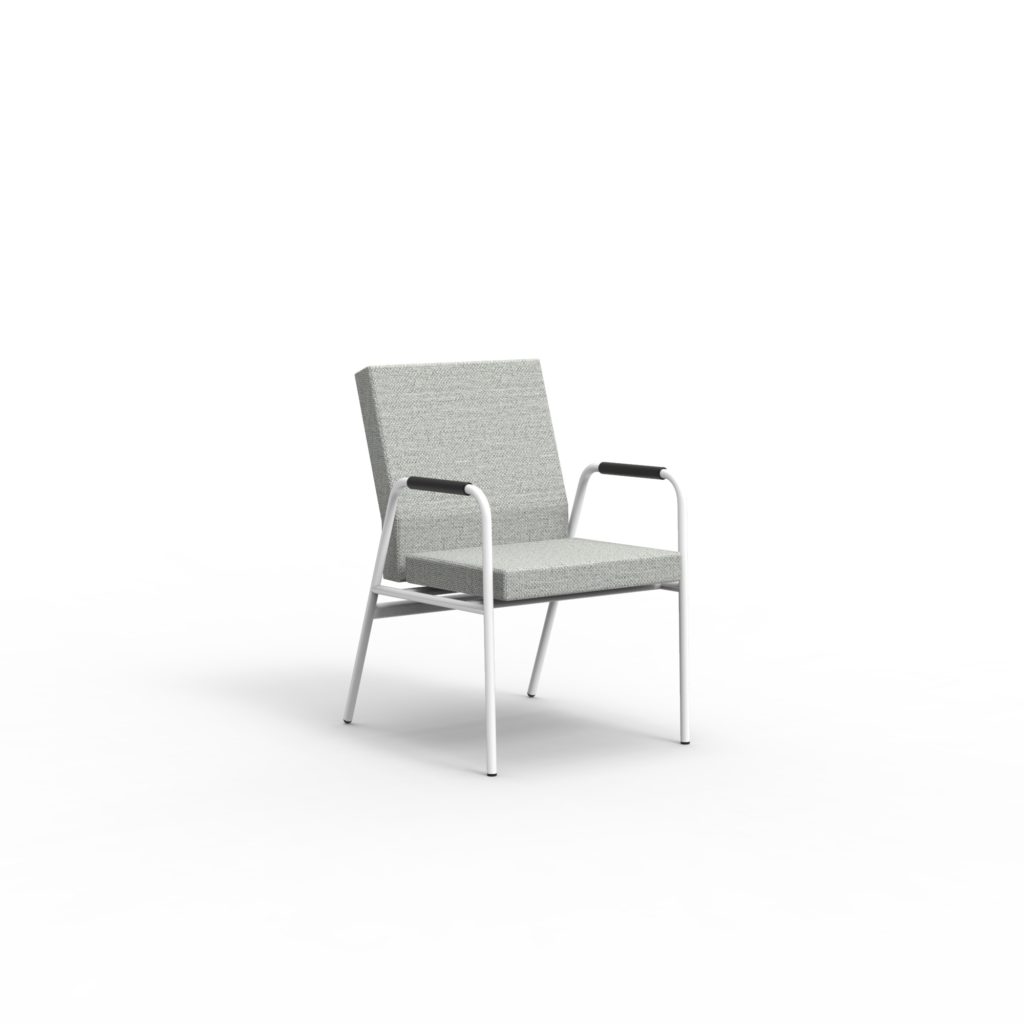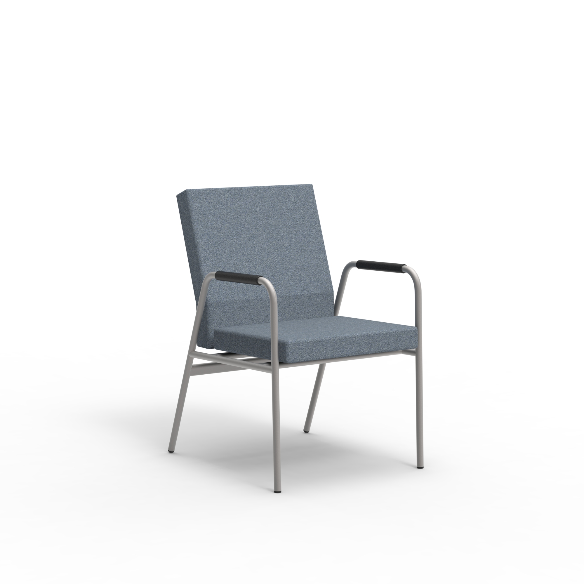 En helklädd karmfåtölj med tjockare sits och ryggstöd för extra komfort. Ett bekvämt val för offentliga miljöer som exempelvis receptioner och väntrum, t ex fristående möbel till balksoffa BEAM. Som standard är karmstativet målat i silverlack men det går även att få i vitt, svart eller valfri RAL-pulverlack. Karmfåtöljen kan skräddarsys med extra sitthöjd och oklädd rygg mot förfrågan. Armstöden har svart spritbart konstläder som standard, annat mot förfrågan, t ex lika som klädsel.